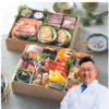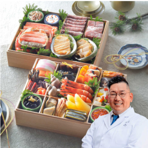 〈一本杉 川嶋〉の川嶋亨さんがおせちに詰めたもの―。それは、開けた瞬間の驚きと味わう喜びです。「おいしいものは地元ですべてそろう」と言い、北陸ならではの山海の幸を選りすぐり、一流の技と経験で磨きあげた料理ばかり。冬の風物詩である紅ズワイガニは、しっとりした食感と甘みが感じられるものを厳選。希少なイチボとランプの黒毛和牛ロースビーフはスライスとブロックに切りわけ、川嶋さんが選び抜いた能登の伝統的ないしるを使用。さらに、ごぼうの七日炊きやふぐの昆布締め、和風の味付けにした国産のキャビアなど、いち推しの美味が満載です。「料理は一人で作るものではない」と川嶋さん。七尾市の目抜き通り”一本杉”の名を屋号に冠したのは、町と生きるという意志の表れ。能登の伝統、豊かさ、情熱が、新年の団らんを笑顔と感動で彩ります。