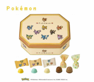 イーブイとその進化形のポケモンをデザインした缶にチョコレートを詰め合わせました。はちみつレモンやソーダなど5つの味が楽しめます。