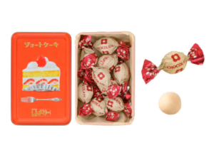 パチパチはじけるキャンディインチョコレートをキャンディのような両ひねりの個包装で包んだ、百貨店限定商品のショートケーキ缶とホットケーキ缶の2種セット。