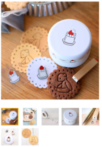 クッキー1枚(ココアアールグレイ)・マスキングテープ(10m巻)・ミニスタンプ・ピンバッジ・シール(くま2枚・ケーキ1枚)