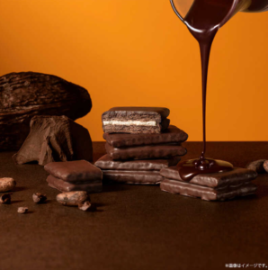 冬限定プレミアム版。なめらかなホワイトショコラを挟んだココア生地を、芳醇な香りとコクの炭火ショコラで包み込んだ贅沢な一品です。