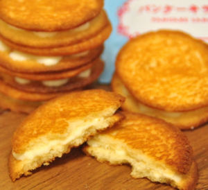 メープルの香りたっぷりのサクサクのクッキーに、ホワイトチョコレートをサンドしたパンケーキ風味のラングドシャです。あまぁい香りがお口いっぱいに広がります。