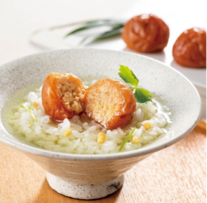 梅干しの中に紀州産まだいとまぐろ、北海道産さけのほぐし身を詰めました。ご飯のお供、お茶漬け、お酒の肴に。