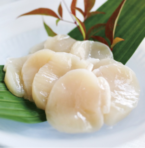北海道産天然帆立貝柱をたっぷり詰めました。お刺身やフライでどうぞ。